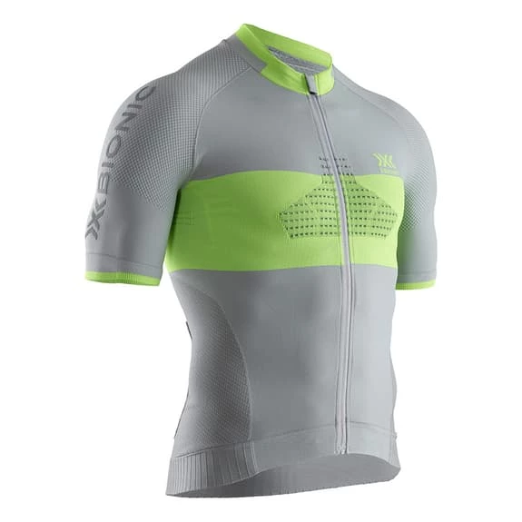 Maillot X-Bionic Regulator Bike Race Zip Manche Courte Gris Clair Vert Lime