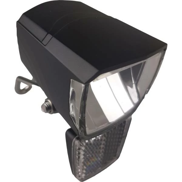 De koplamp heeft een heldere, 50 lux led lamp en kan bevestigd worden aan de voorvork van de E-Bike.