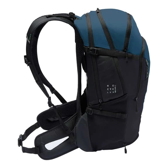 Le sac à dos Vaude Bike Alpin, d’une capacité totale de 25+5 litres, vous permet d’augmenter son volume pour les randonnées VTT ou les excursions de plusieurs jours. L’agencement astucieux de ses compartiments, dont un adapté à l’utilisation de bidons supplémentaires, vous permettra d’organiser efficacement et facilement votre équipement. La zone de contact dans le dos est faite de tissu en mesh pour une ventilation constante pendant le pédalage. Ses nombreux détails techniques, comme les poches latérales en mesh ou la possibilité d’augmenter sa capacité de 5 litres supplémentaires, en font un choix idéal pour les parcours exigeants et longs. Il est compatible avec le système d’hydratation. La finition Eco Finish est 100 % sans fluorocarbures. L’étiquette Vaude Green Shape est synonyme de produits fonctionnels et respectueux de l’environnement fabriqués à partir de matériaux durables.