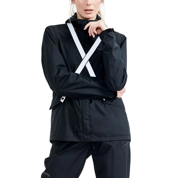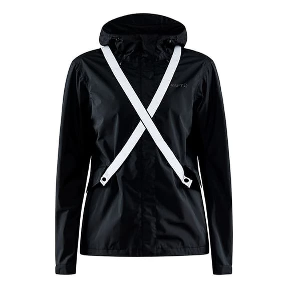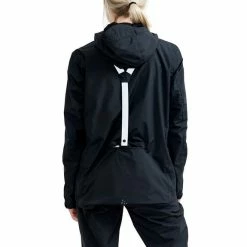 La veste Craft Core Bike Ride Hydro Lumen pour femme est imperméable et coupe-vent, avec des coutures scellées et une capuche réglable.